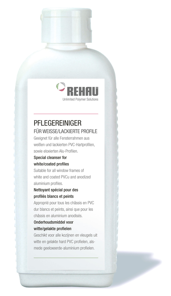 Unser Tipp: Benutzen Sie zur professionellen Reinigung Ihrer Fenster den original REHAU Pflege-Reiniger. Erhältlich für weiße/lackierte sowie folierte/kaschierte Profile.